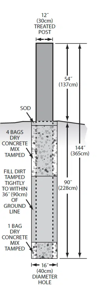 Posts that are set deeper in the ground provide much more stability. In regions with frost, you’ll want your post holes to extend below the frost line. This ensures that the expanding and contracting ground won’t push your posts out of alignment during freezing temperatures.